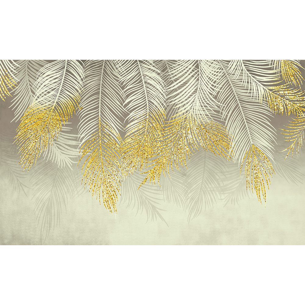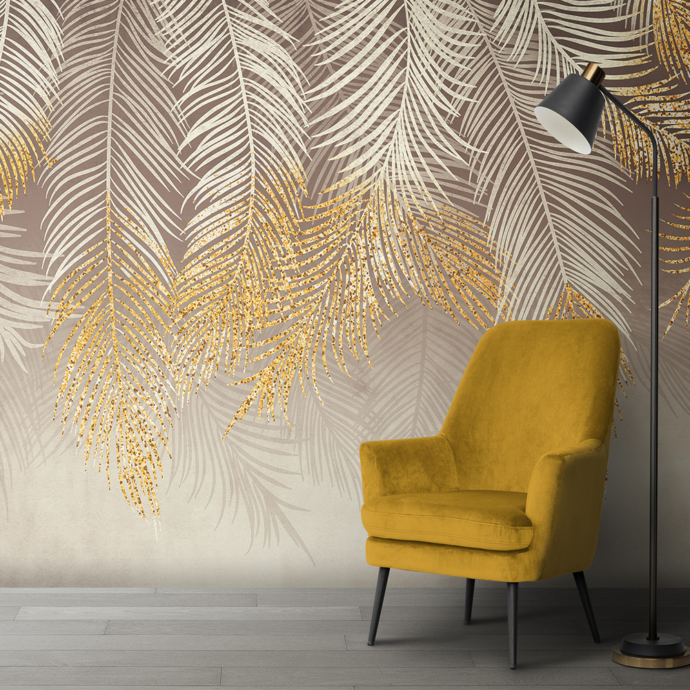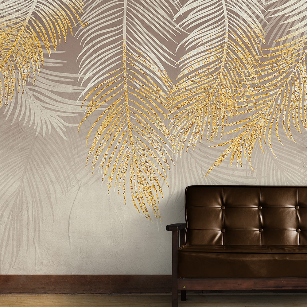 PAPIER PEINT: FEUILLE PALMIER DORÉ SKU2420